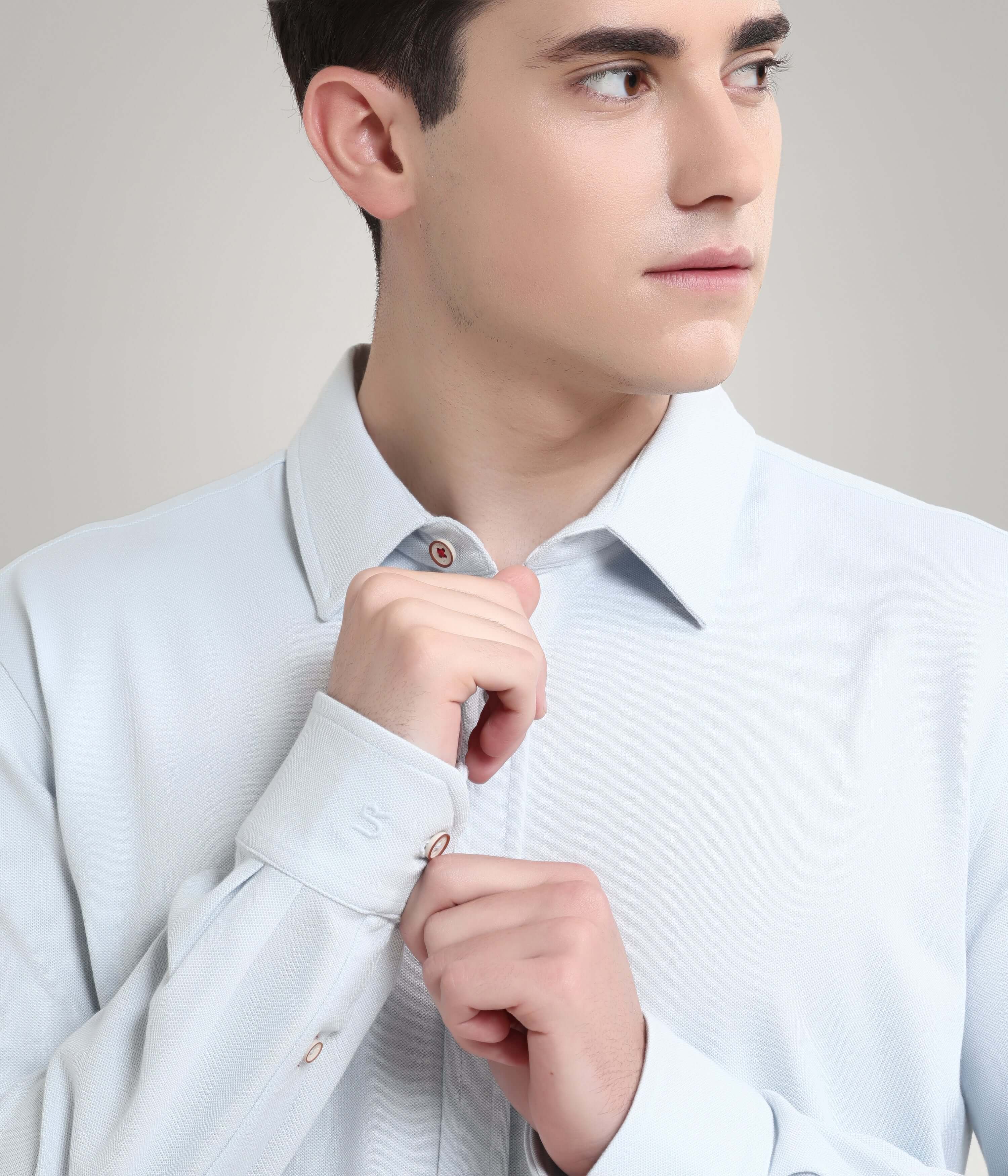 Elevate your wardrobe with the Turms Intelligent Knitted Shirt, a perfect fusion of style, comfort, and innovative functionality. Crafted from premium super combed cotton fibers with a touch of spandex, these shirts offer exceptional quality and durability, ensuring they withstand the test of time. The precise stitching with Coats Thread from the UK ensures durability, while Fredenburg Interlining from Germany provides a crisp, polished finish to the front placket. The premium fixed bone on collars maintains an extra crisp touch of sophistication, keeping your look sharp and refined.
